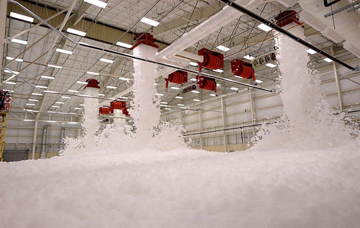 Binalarda ve endüstriyel tesislerde yangına ilk müdahele genellikle taşınabilir söndürme cihazları (kimyasal kuru tozlu veya karbondioksitli) ile yapılır. Başarılı olunamazsa yangın dolaplarından su ile müdahele edilir.